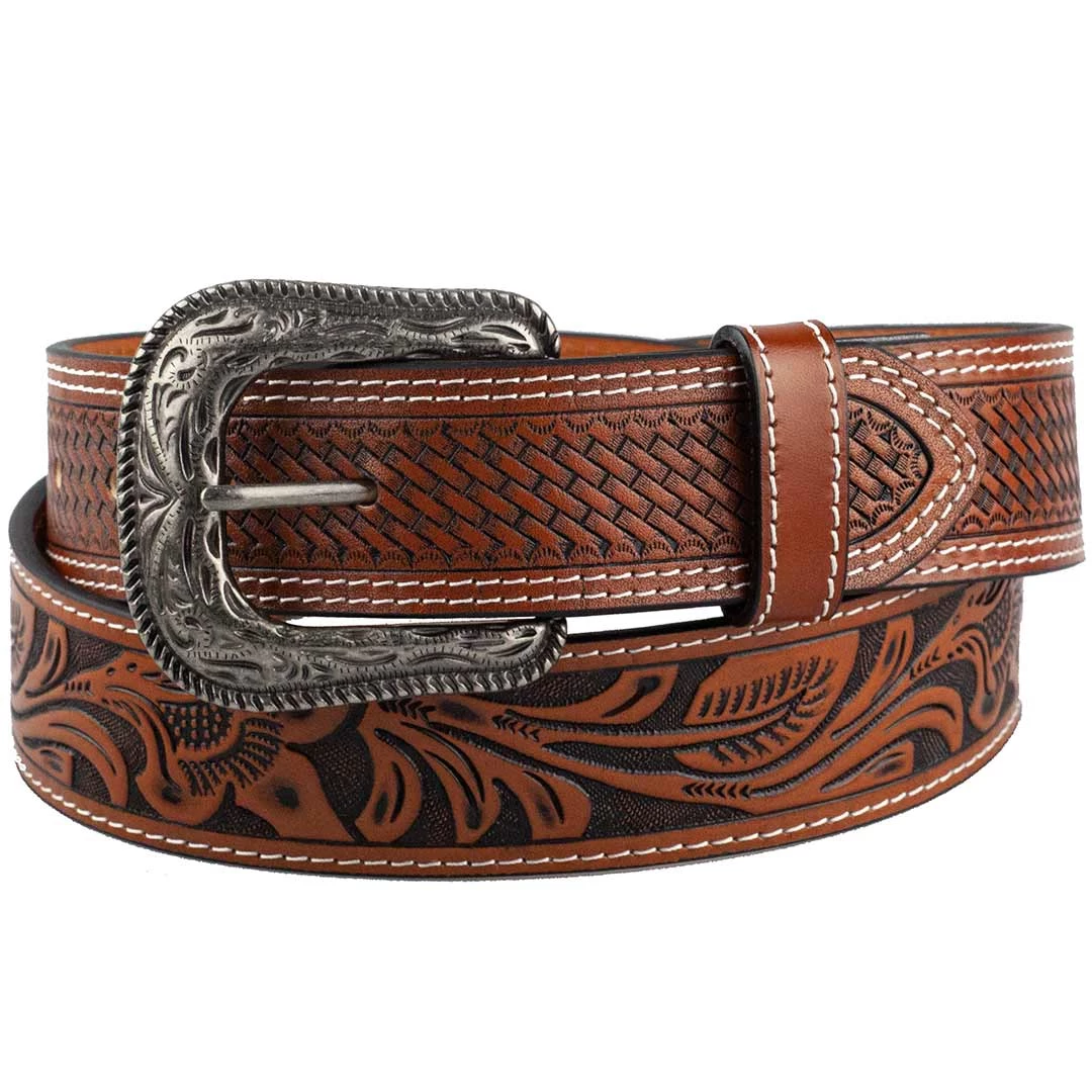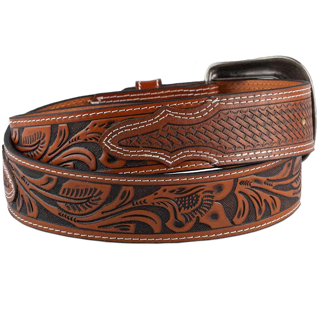 AndWest Men’s Veg Tooled With Basketweave Billets Belt