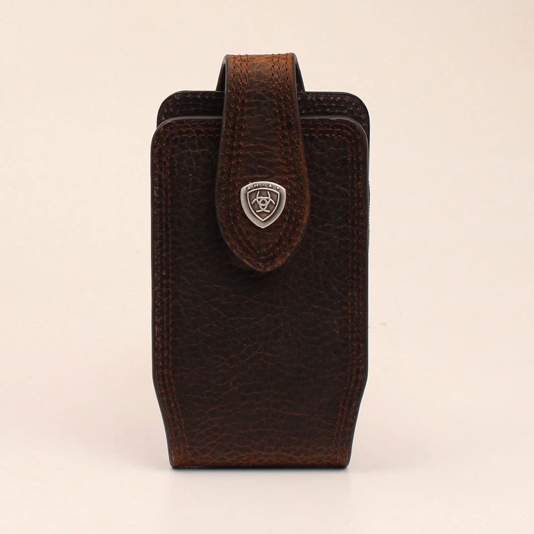 Provide excellent protection for your cell phone with this Ariat brown rowdy leather cell phone case by M&F Western Products. The edges are triple stitched which adds to the durability of this great case and complimented with a silver Ariat Signature Logo concho. With this stylish cell case, you will always have your phone close at hand. Measures 3-1/4” x 6”.