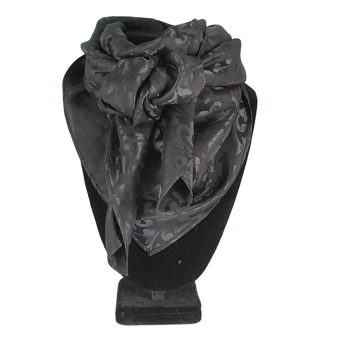 This beautiful wild rag is done a tonal filigree design. The back of the scarf has reversed the colors, giving it an iridescent look when worn. Being a bit larger in size, this western scarf is very versatile.