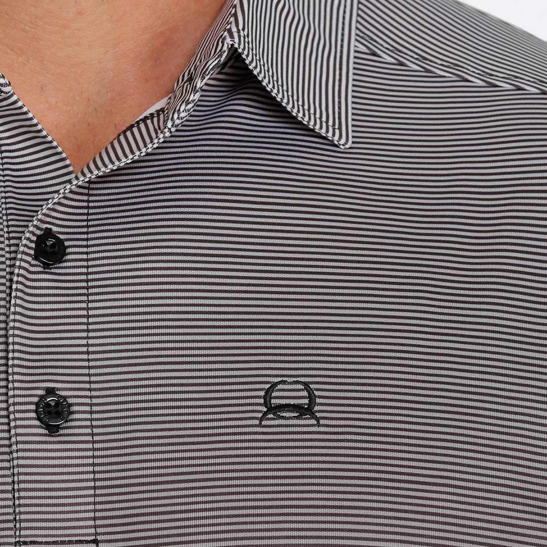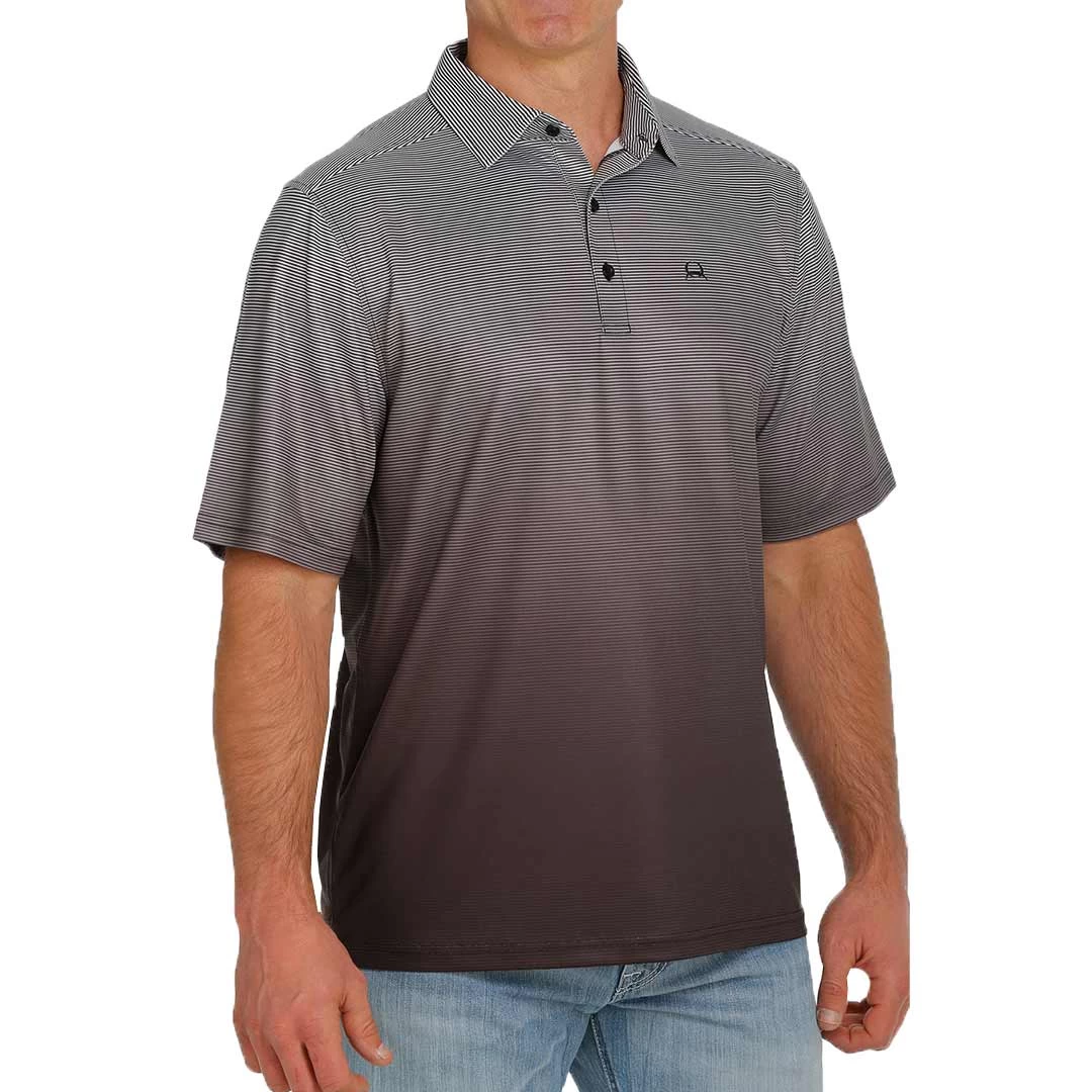 Keep cool and on trend in this black ombre Arenaflex polo shirt that features a gradient stripe pattern, white buttons and Cinch logo embroidery. Poly-spandex construction provides a lightweight, moisture-wicking feel that’s the perfect choice for ranch chores or trail rides.