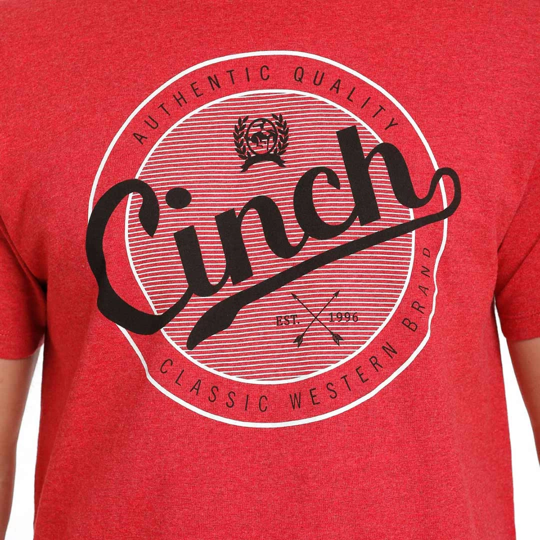 Expand your wardrobe selections with Cinch’s heather red tri-colour crew neck tee. A kick-back-and-relax choice that’s perfect for pairing with denim and boots, this tee features soft and durable cotton-poly construction with a Cinch front screen print.