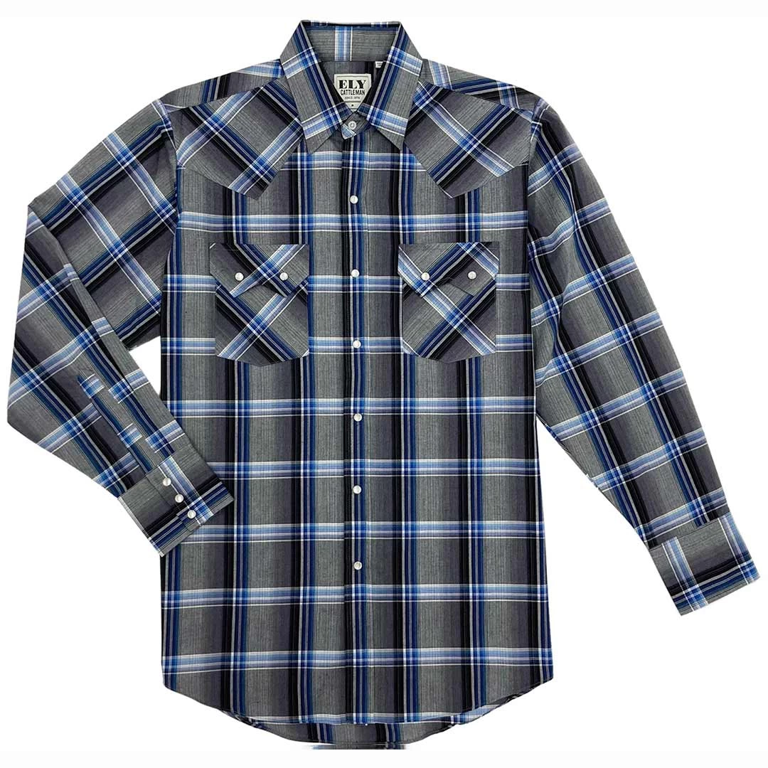 The classic! This rich looking plaid shirt from Ely Cattleman features pearlized western snaps, front and back western yokes and two front sawtooth flap pockets with snaps.