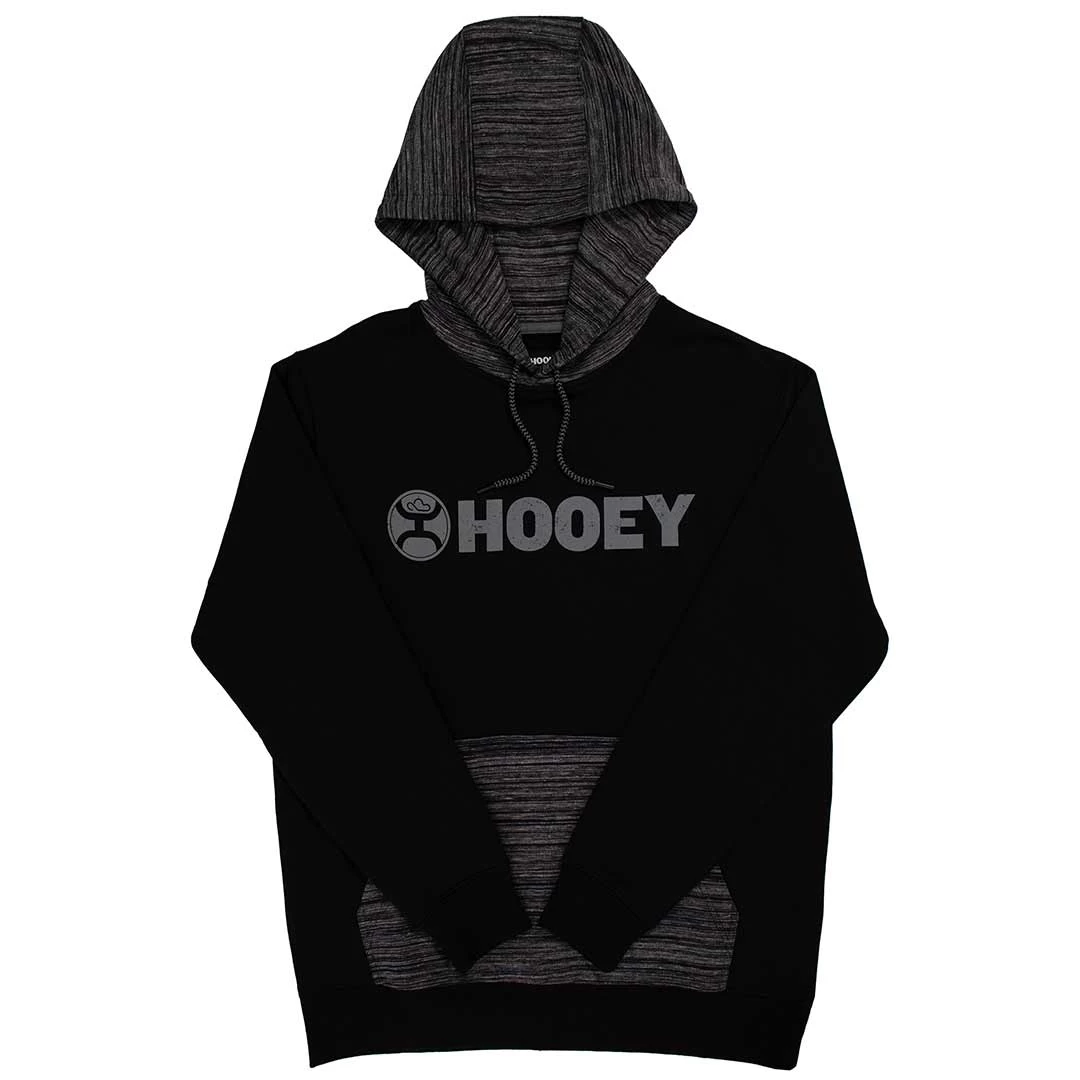 This black men’s hoodie features a grey Hooey name brand and logo with a heather patterned double-lined hood. Made of a soft cotton-polyester blend, this pullover hoodie offers warmth and durability. Practical for cool or cold weather, this stylish and comfortable Hooey hoodie is great for everyday casual wear.