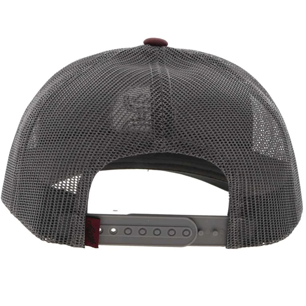 Another go-to from Hooey. This cap has a burgundy front, grey mesh back and grey logo embroidery.