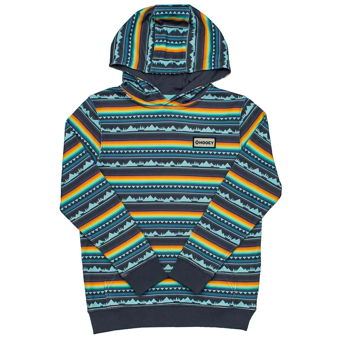 This men’s hoodie features a Hooey logo with serape stripe mountain all-over pattern. Made of a soft cotton-polyester blend, this pullover hoodie offers warmth and durability. Practical for cool or cold weather, this stylish and comfortable Hooey hoodie is great for everyday casual wear.