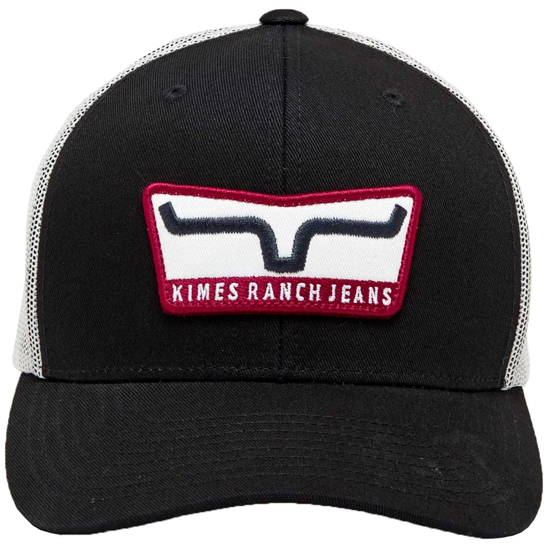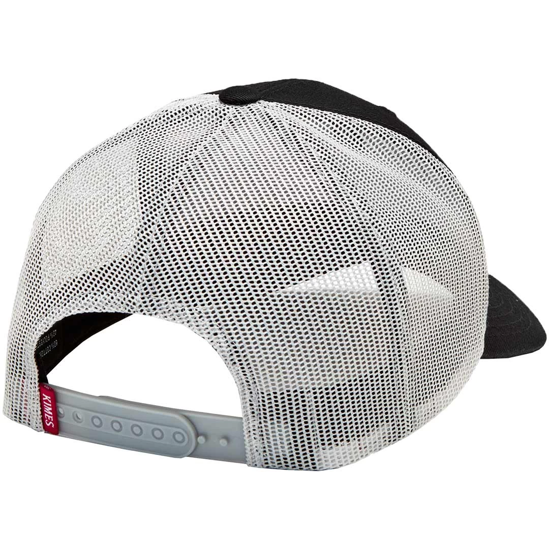 The Extra Crunchy trucker cap from Kimes Ranch features 6 panel construction, a white mesh back, snap back closure, embroidered contrasting twill patch and a curved bill.