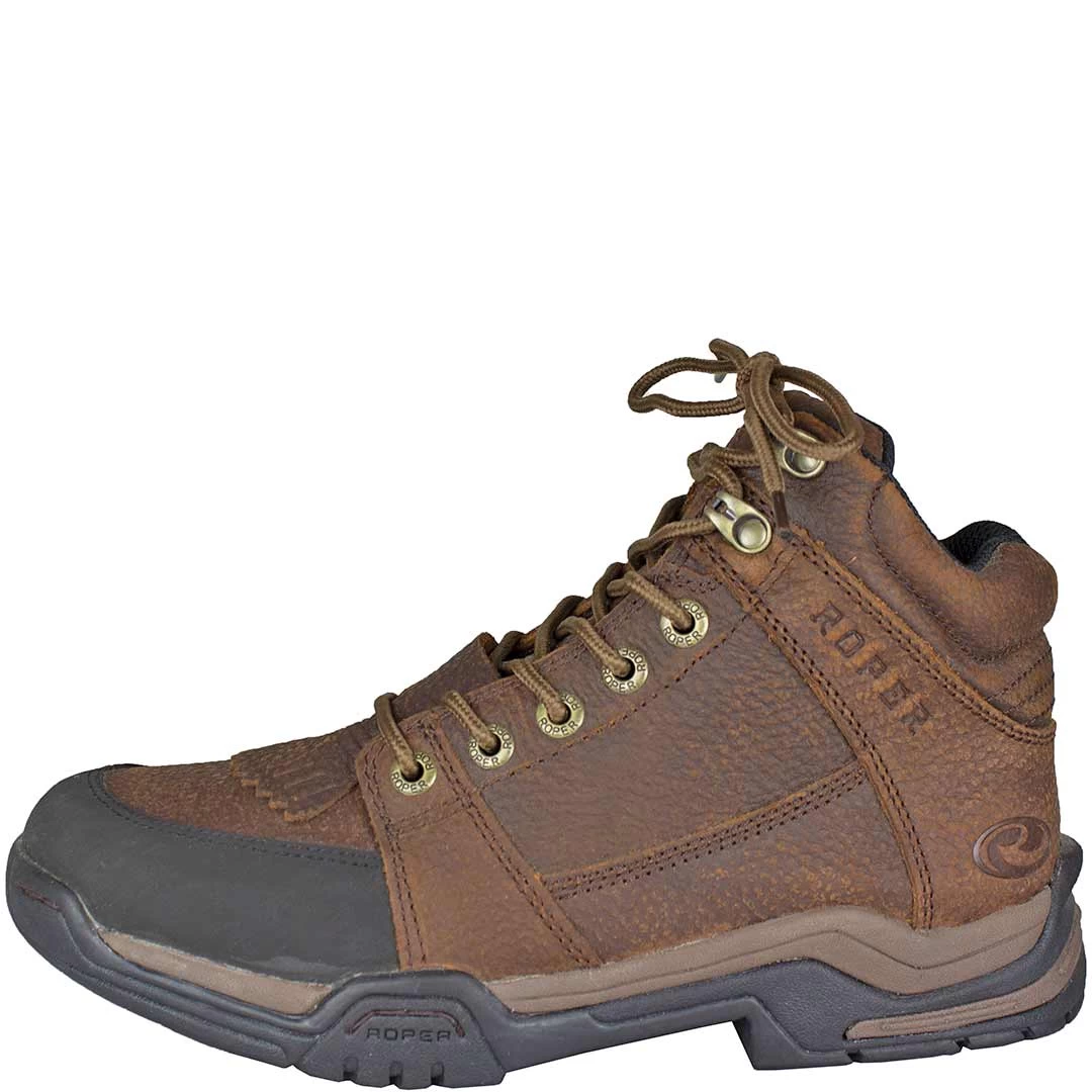 Roper Horseshoe casual lace-up boots incorporate all the important features of a western boot. Western lace up styling and brown tumbled leather are combined to create an updated Kiltie Horseshoe that gives you the freedom of being able to work, play and ride all in the same shoe!