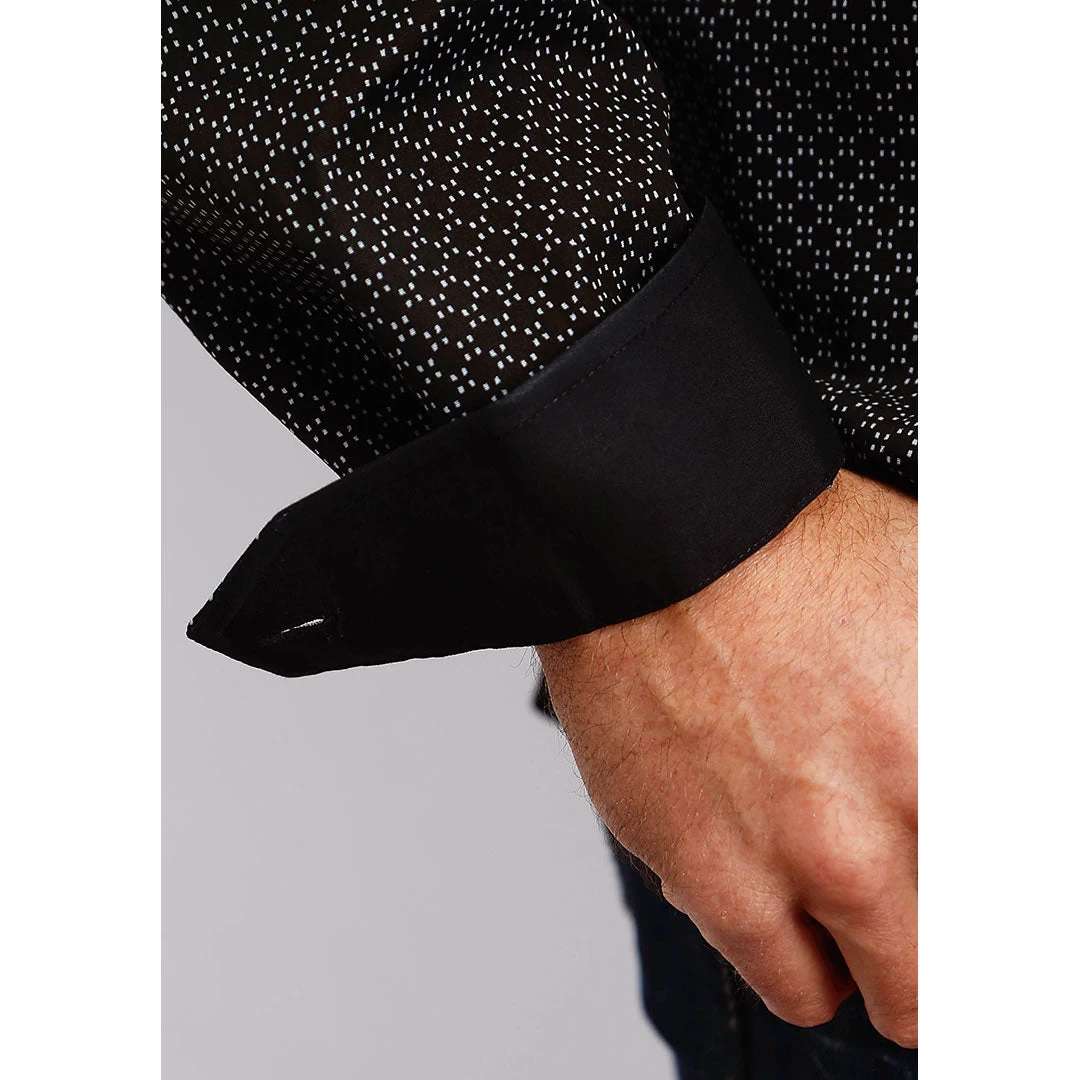 From Stetson, this geometric pattern shirt is just the ticket to a trendy look for the office and any evening plans you might have. The shirt features a straight back yoke with pleat, contrast trim on inside cuff and Stetson logo stacked buttons.