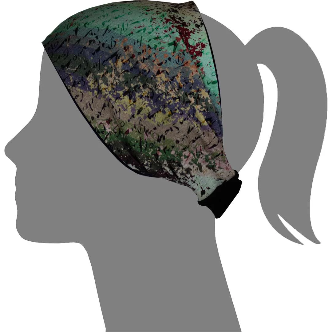 Watuko Headgear is designed and produced in Canada from luxurious Bamboo. This multi-functional bandeaux can be worn in your hair as a headband, or on your hat as a colorful band. The beautiful pastel earthscript pattern can also be worn in reverse to solid black. Watuko Headgear is enjoyed in all seasons.