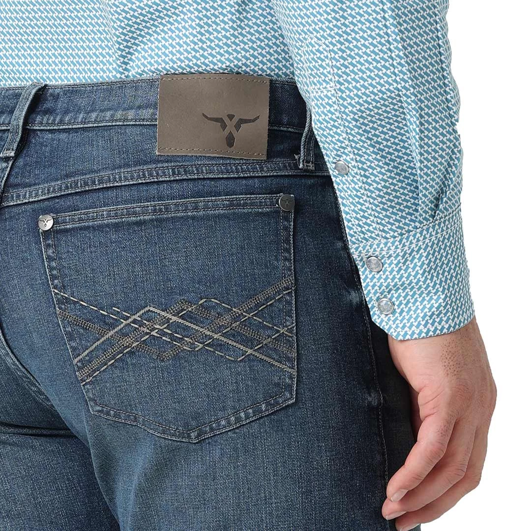 There’s nothing more essential to a cowboy’s wardrobe than a hard-working pair of bootcut jeans. Wrangler 20X vintage jeans combine the comfort you want with the durability you need to take on each day with confidence. No. 42 jeans from the Wrangler 20X collection are made from comfort stretch or 100% cotton denim and finished with distressed detailing for an instant broken-in appeal. Our men’s 20X 42 vintage bootcut jeans sit just below the waist for a casual look you can wear on any occasion. They also feature a slim seat and thigh as well as a full opening from the knee down to leave room for your boots. The Wrangler 20X vintage bootcut jeans are available in a variety of washes. Best of all, each jean comes with bold embroidery on the back pocket to take your look to a whole new level.