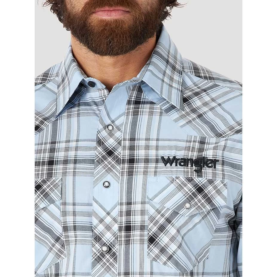 Wrangler Men’s Logo Western Plaid Snap Shirt