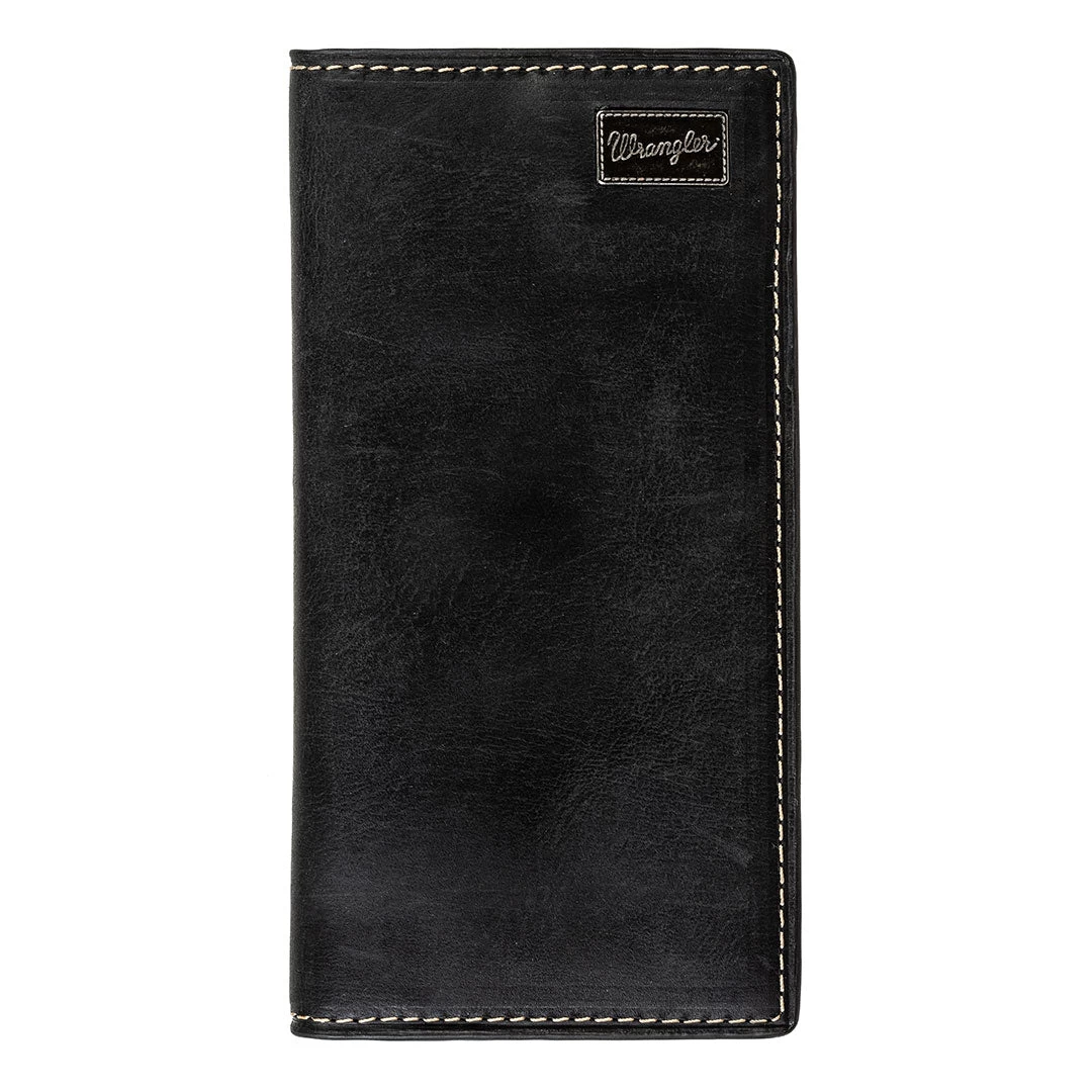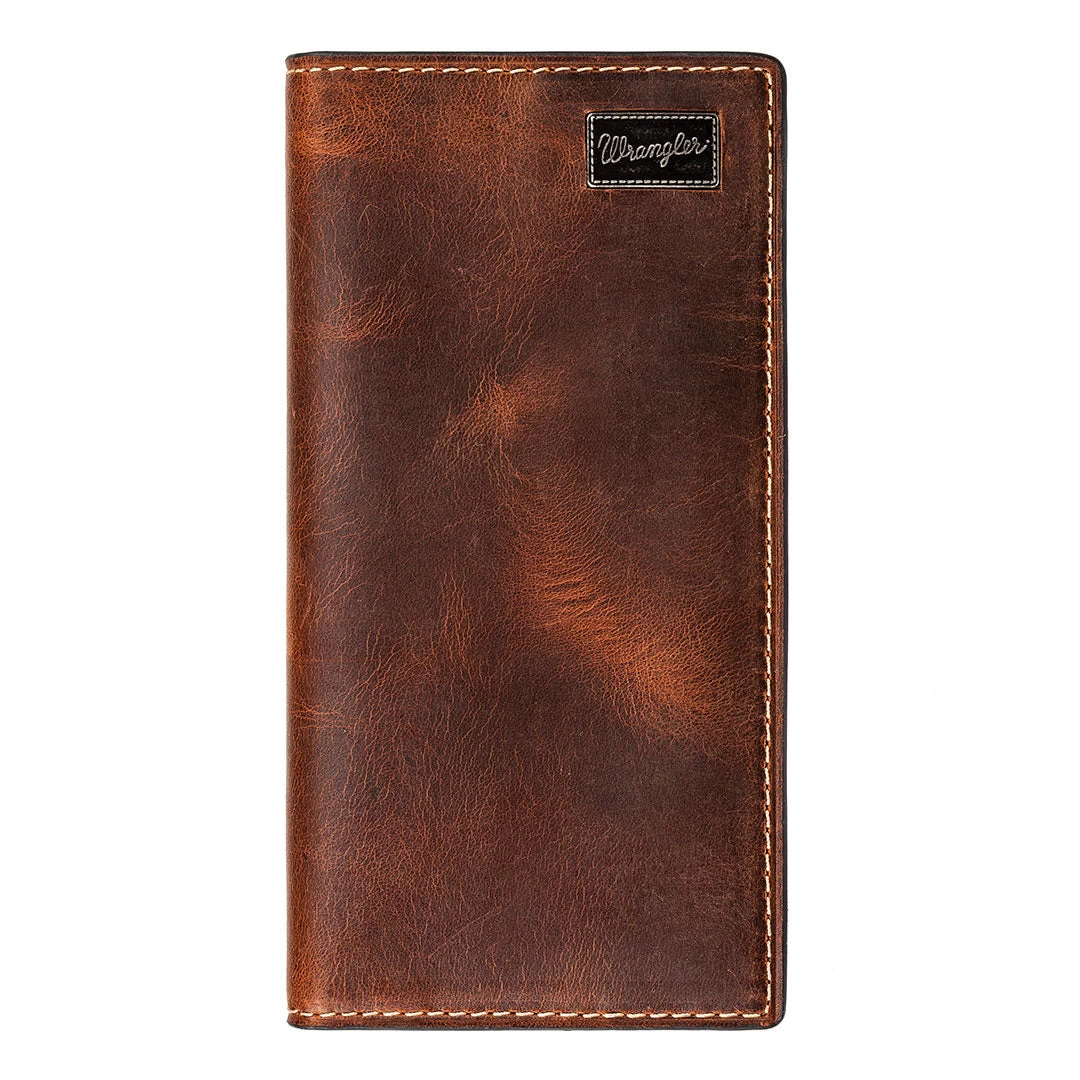 From Spirit Leather Works Wrangler collection, this rodeo style wallet features 8 credit card slots, 1 ID window, 3 slip pockets, 1 money compartment and metal Wrangler logo.
